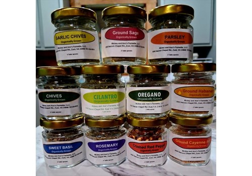 Herbs from our herb garden. Organically grown and quickly dried. In 3 tablespoon jars.
