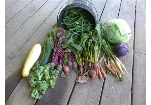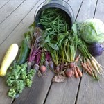 A variety assortment of 4-6 garden products in season this week. greens, veggies, fruits. Farmers choice and freshly harvested